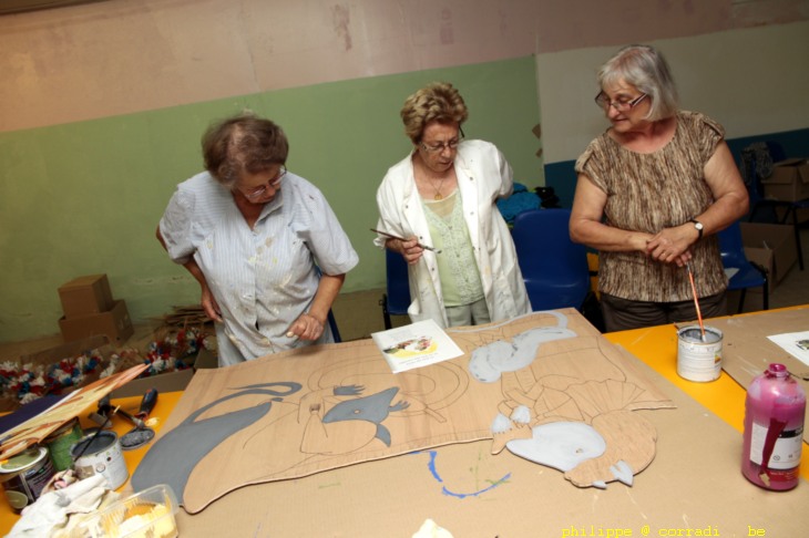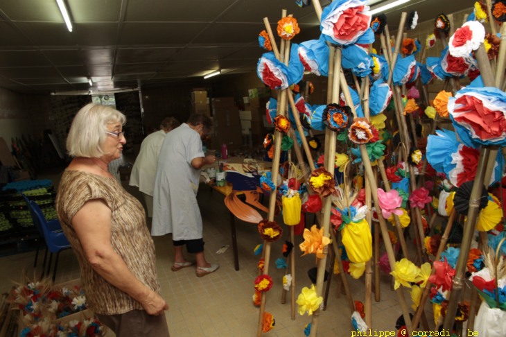 les bénévole d' Ainay prépare les fleurs et les chars